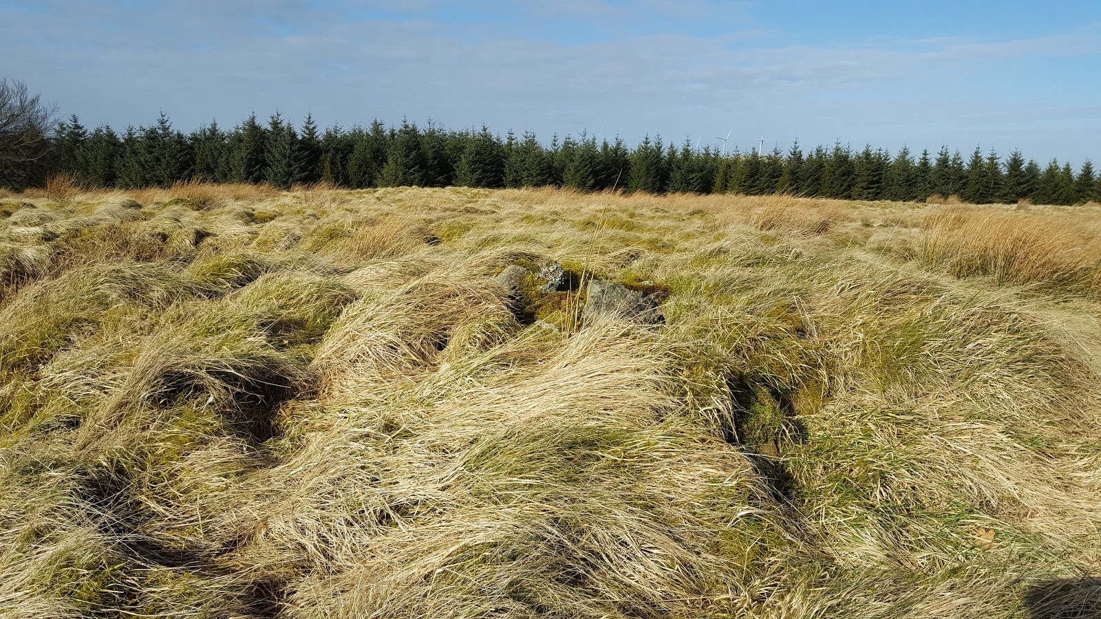 I descended to the track again to avoid crags and then picked up a faint path which avoided the worst of the heather and which took me all the way to the metal pole that marked the highest point.....